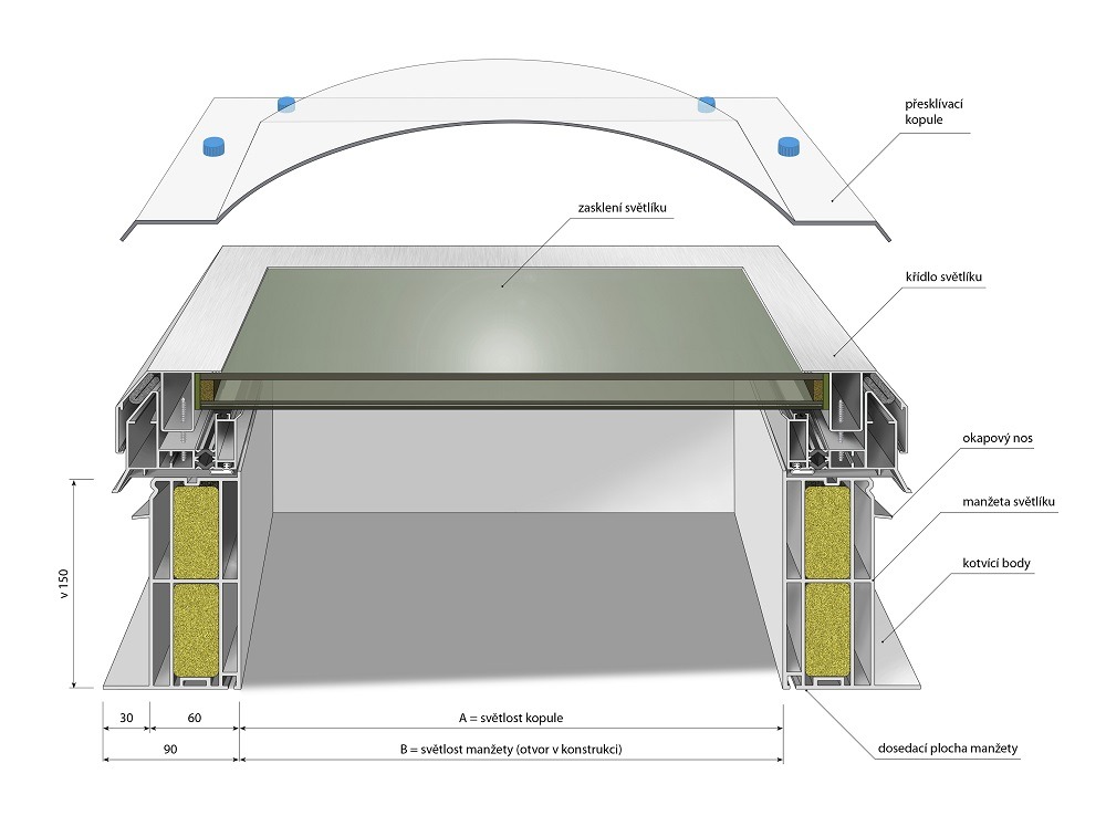 Dbejte pokynů pro dimenzování světlíků na zatížení sněhem.